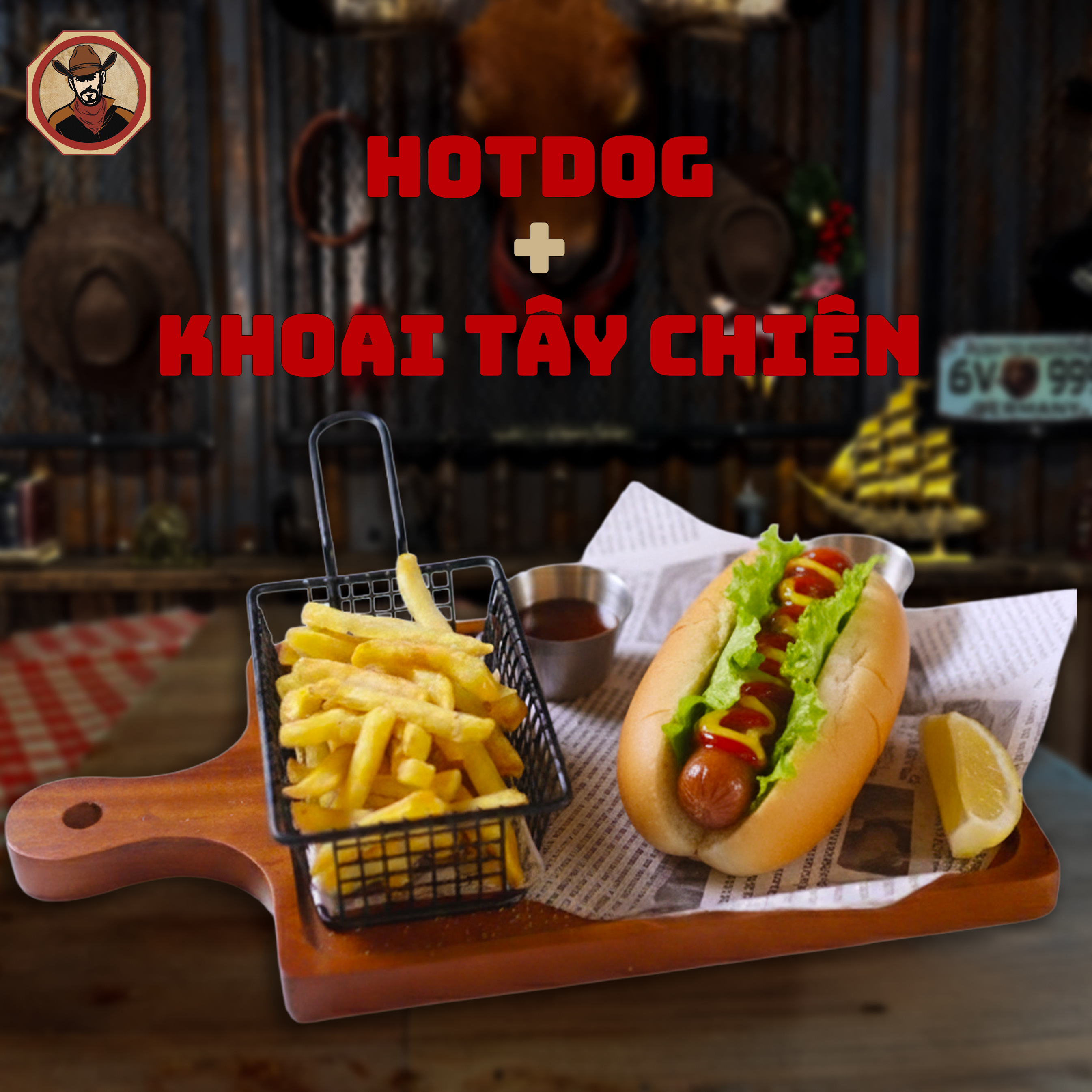 Hotdog Texas + Khoai Tây Chiên